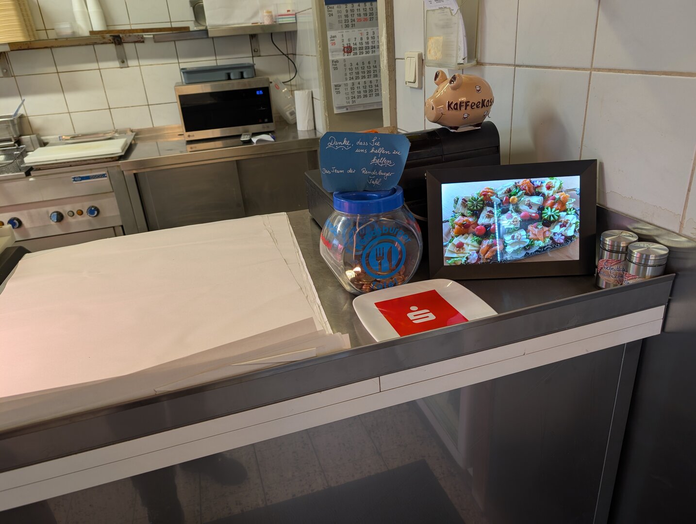 unser täglich wechselnder Mittagstisch zum Mitnehmen oder Vor-Ort-Essen immer ab 11 Uhr und bis es alle ist;
