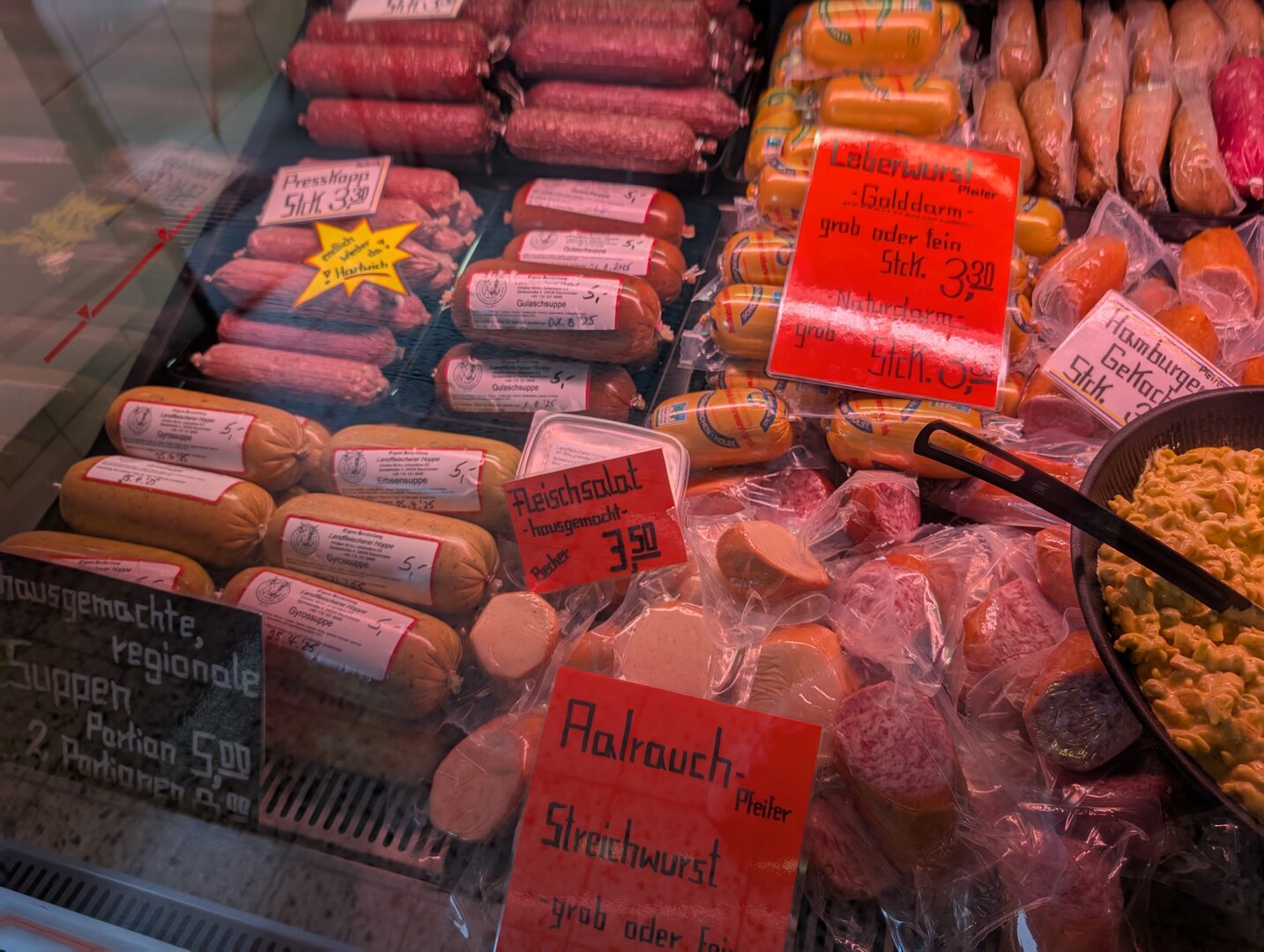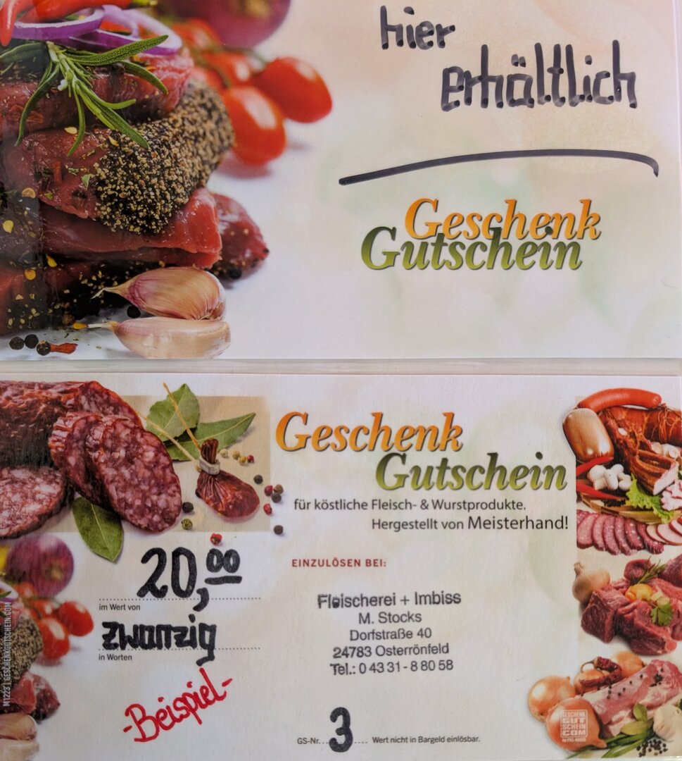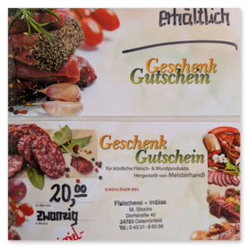 Rinderfilet -TK- kg  € 35,00 * Rumpsteak/im Stück -TK- kg € 19,00 * Rindergulasch (auf Vorbestellung) kg € 16,00 * Rinderrouladen (auf Vorbestellung) kg € 19,98 * unsere besten Wiener lose kg € 11,00 * ständig selbstgemachte Suppen - TK- Spargel-Erbsen-Gulasch ab € 5,00 * verschiedene Bratwürste ab € 6,00 * Grillnacken, Grillbauch, Hähnchenbrust kg € 13,50