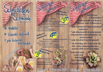 unsere liebevoll hergestellten Schnittchen für jeden Anlass; nach Absprache zu jeder Tages- und Nachtzeit